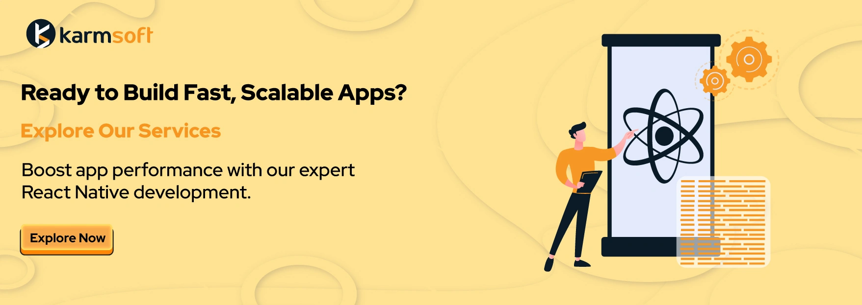 Need to create your next high-performing application? Engage with the experts at Karmsoft in React Native application development services and make your vision become a fast, scalable, and future-ready digital experience.